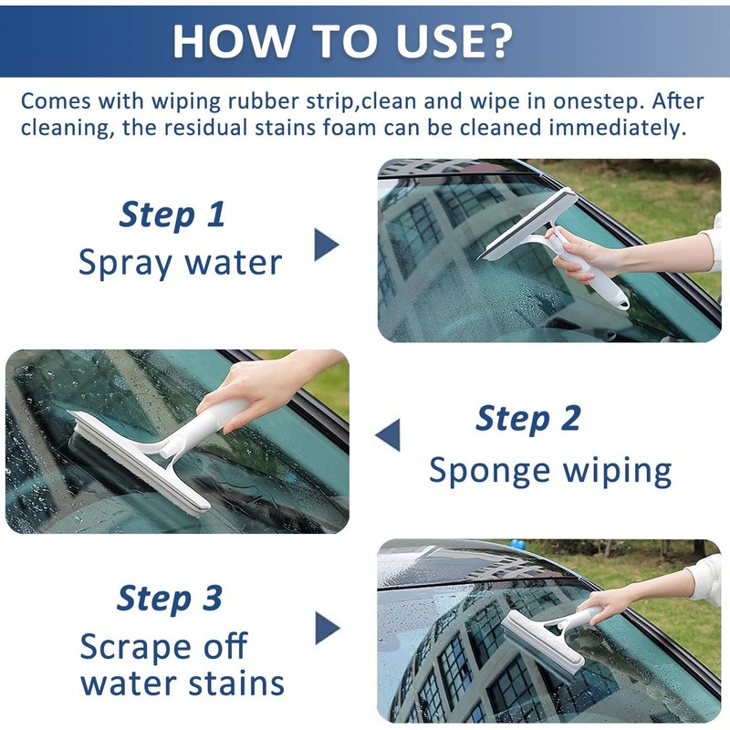 - All-in-One Cleaning Power: Say goodbye to juggling multiple tools! The 3-in-1 Spray Squeegee combines a built-in spray bottle, a powerful cleaner, and a high-performance squeegee for a seamless, streak-free clean on windows, mirrors, glass, and more—perfect for homes, cars, and kitchens