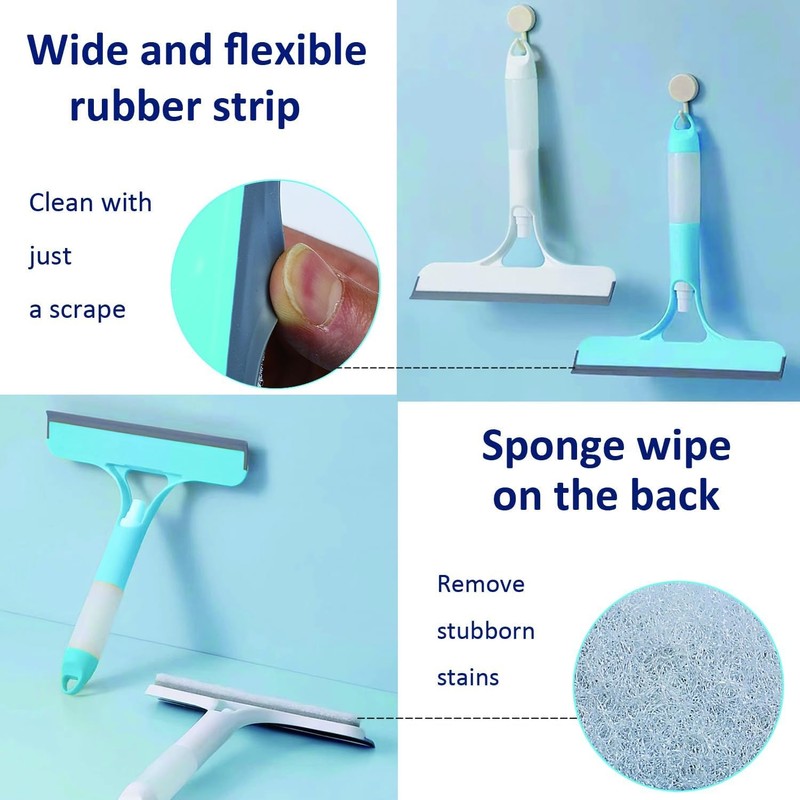 3 in 1 Window Cleaning Scraper,New 3 in 1 Window Cleaner,Squeegee and Scrubber with Spray, for Windows, Walls,Car Windshields, Bathrooms, Kitchens, All-Purpose Window Cleaner Tool (White+Blue)