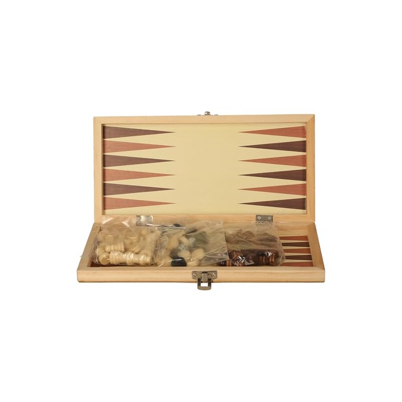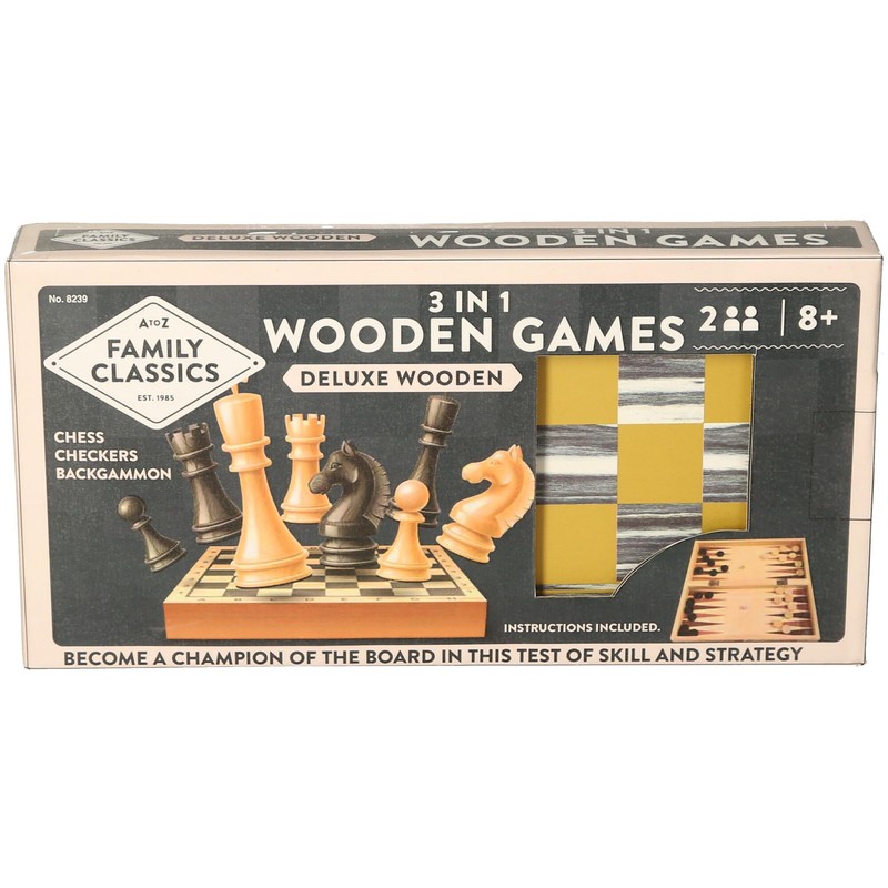 3 in 1 Wooden Games - Chess - Checkers - Backgammon