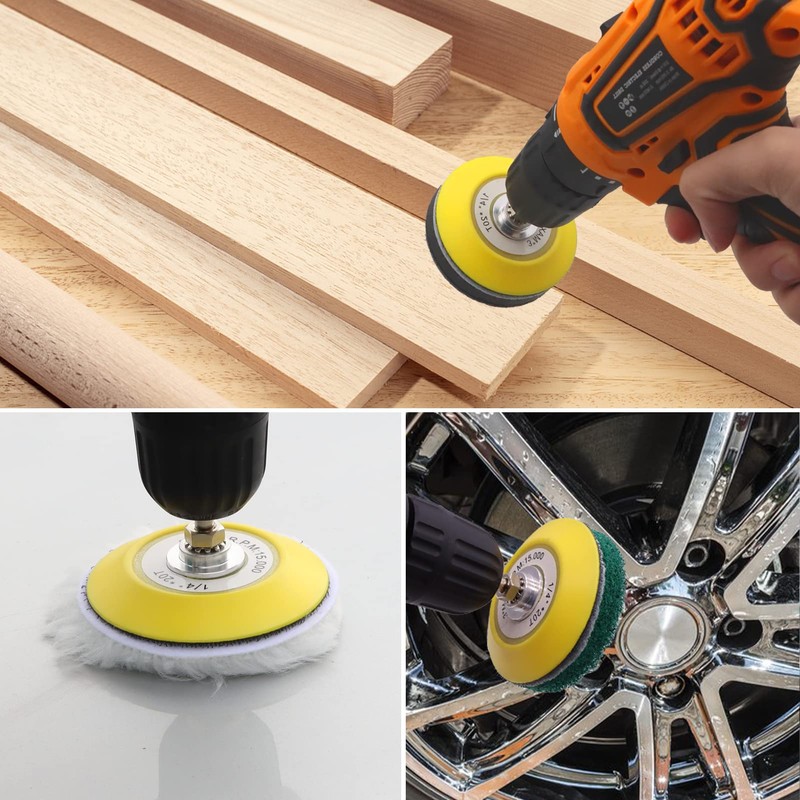 - 【PACKAGE INCLUDE】5 scouring pads + 10 waterproof sanding discs in grit 2000/5000/10000 + 1pc 1/4 inch shank backing pad + 1 soft interface pad + 2 woolen buffer pads, Totally 39 pcs(Drill not included).