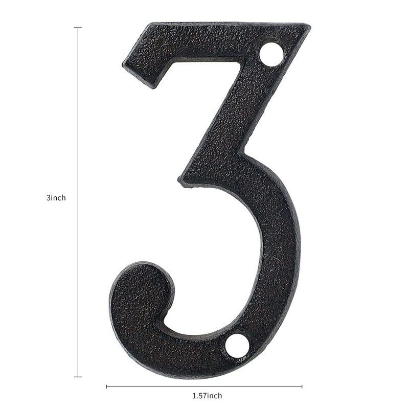 3 Inch Cast Iron House Numbers and Letters, Vintage Cast Iron Home Number Solid Metal Gate Mailbox Numbers, Matching Screws Included (Number 3)