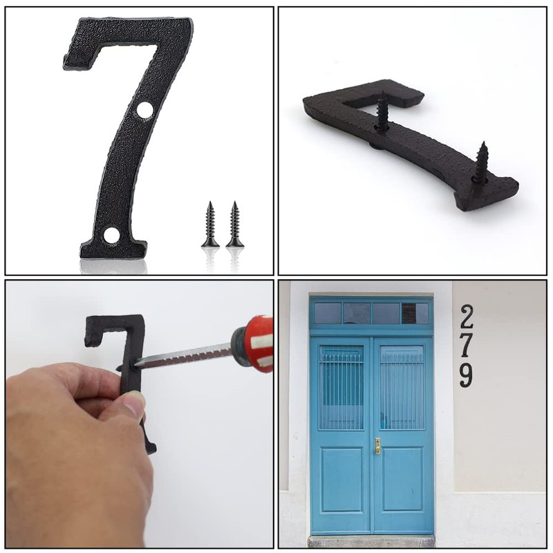 • QUALITY MATERIAL: The house number is made of cast iron and painted black coating on the surface. Secure and stable, durable and long time service life.