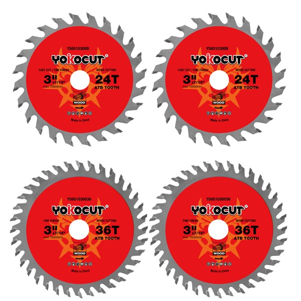 3 Inch Circular Saw Blade 24T & 36T (Tungsten Carbide Tooth) Compatible with 3 Inch Saws, Cutting for Wood, Plywood, OSB, Veneer, Plastic, 7/16" Arbor with 3/8" Bushings - 4 Pack