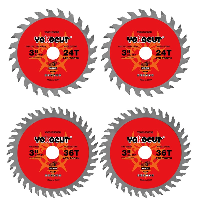 - 3 Inch Circular Saw Blade 24T & 36T (Tungsten Carbide Tooth) Compatible with 3 Inch Saws, Cutting for Wood, Plywood, OSB, Veneer, Plastic, 7/16" Arbor with 3/8" Bushings. 0.07" Blade thickness.