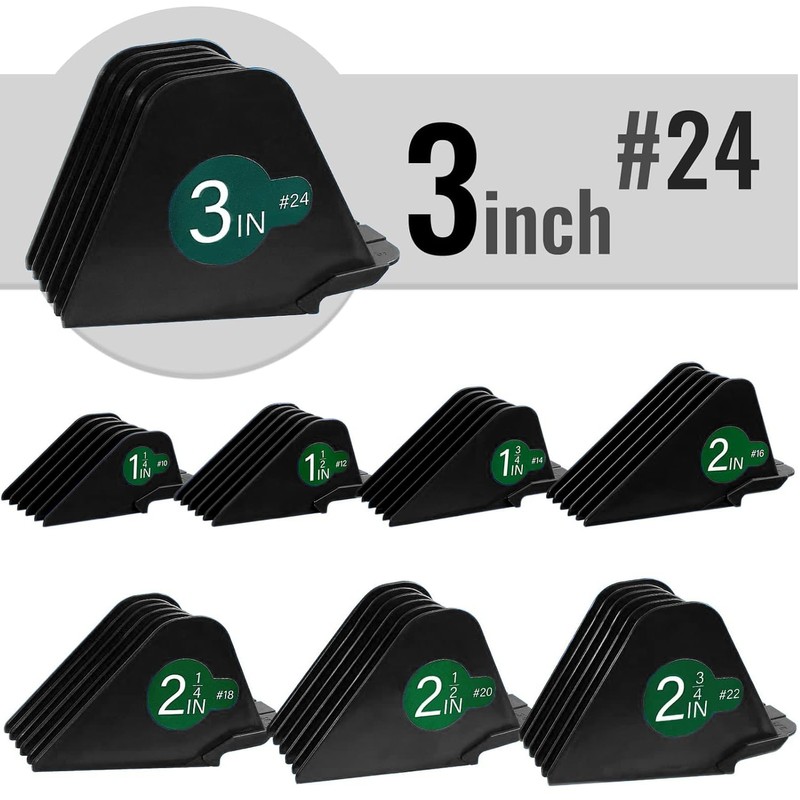 - Huge, Perfect for A Long Cut: Premium extra large clipper guard set includes 3 inch/76mm (#24), 2.75 inch/69mm (#22), 2.5 inch/64mm (#20), 2.25 inch/57mm (#18), 2 inch/51mm (#16), 1.75 inch/44mm (#14), 1.5 inch/38mm (#12), 1.25 inch/32mm (#10) combs. You 're able to keep the top of hair cut short, but not too short.