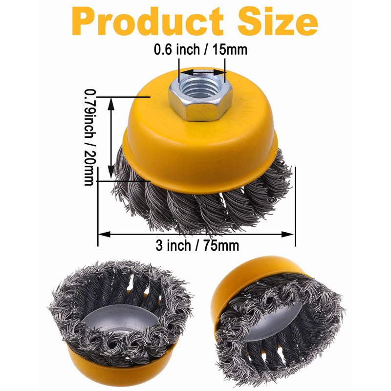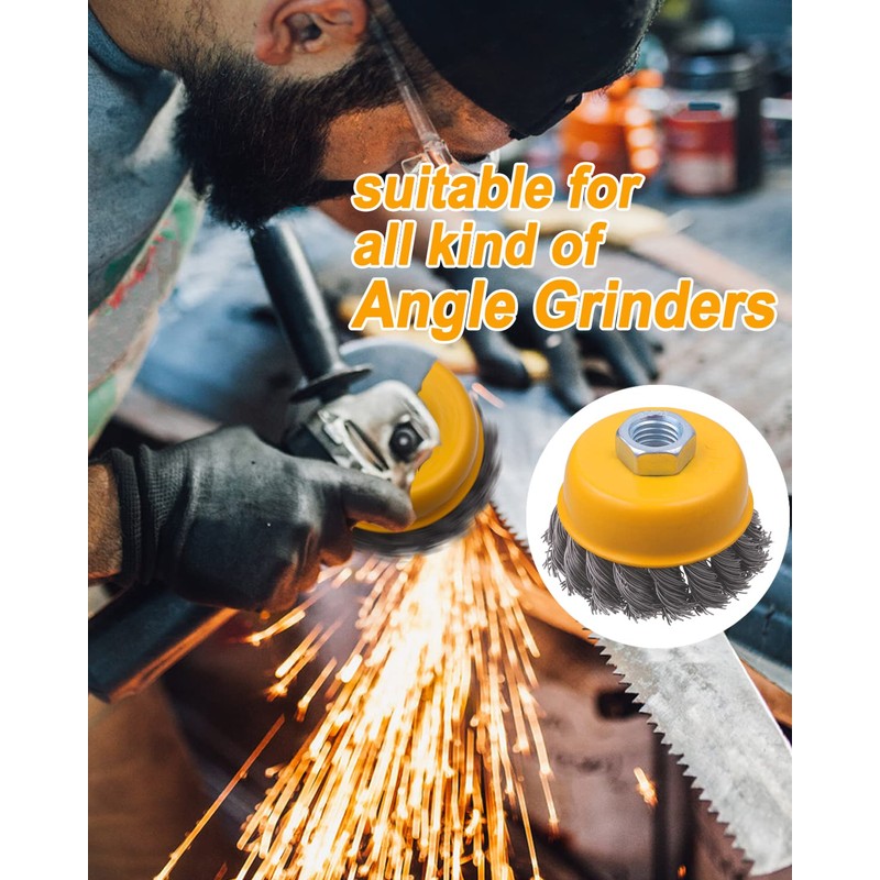 - Enduring and Safe - The inner and outer fixing plates are double-pressed by thickened steel, which make the wire on the cup brush firmer and safer. The thickened nut has a regular thread and is firmly connected to the angle grinder. Effectively avoid the occurrence of steel wire flying and breaking during heavy work.