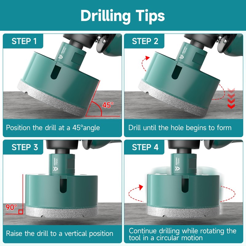 • Wide Application: Ideal for kitchens, bathrooms, decoration, flooring, furniture, and wall installation; Efficiently drills hard materials like porcelain tile, ceramic tile, granite, stoneware, marble, and quartz; Perfect for home renovation, commercial construction, and industrial use