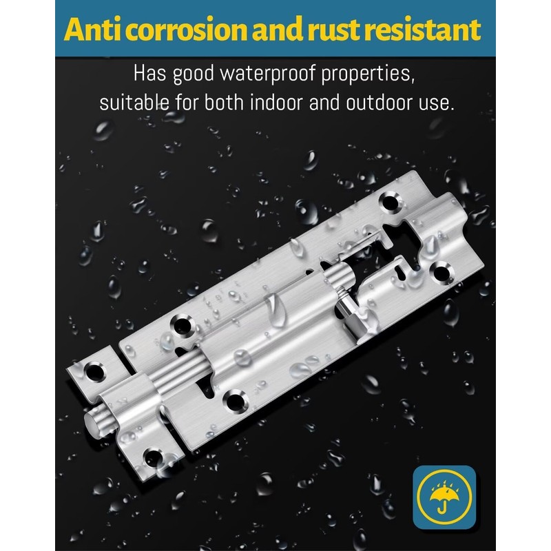 - Stainless steel sliding bolt: the door bolt bolt with eyelet is made of solid and thickened stainless steel material, which has corrosion and rust protection properties. The gate lock is flat and burr-free and can be used indoors, outdoors and in damp areas.