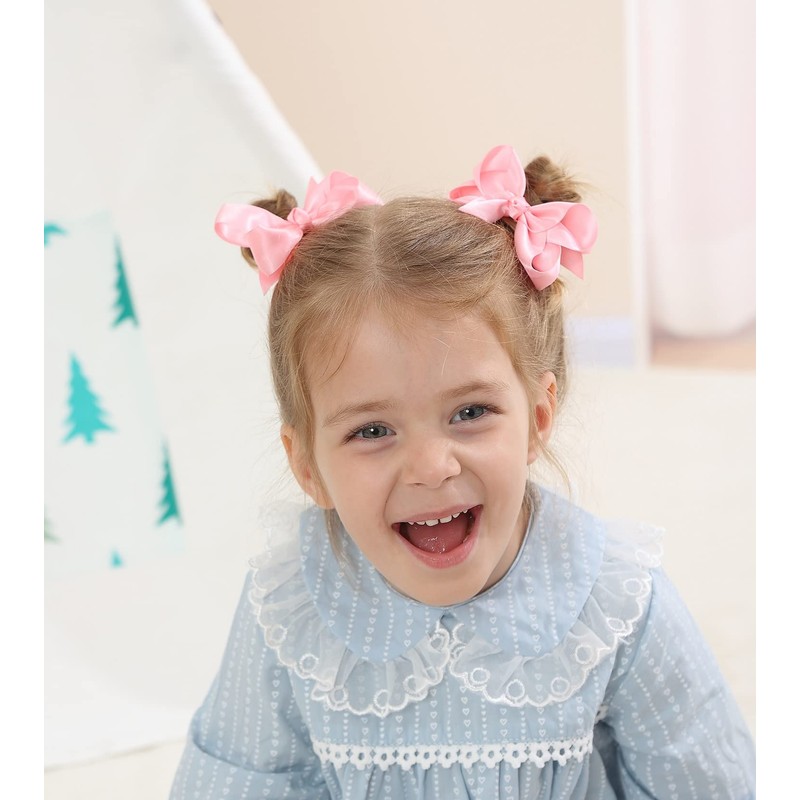 3 Inch Satin Bow for Little Girls - 2 Pcs (Pink)