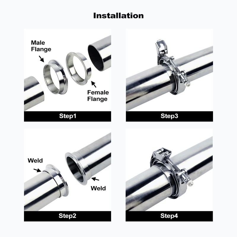 ROADFORMER 3 inch V Band Clamp - 2 sets of Quick Release Vband Exhaust Clamp with Flange Stainless Steel for Automotive exhaust system, turbocharger, downpipe and mufflers (3" - 2 Pack)