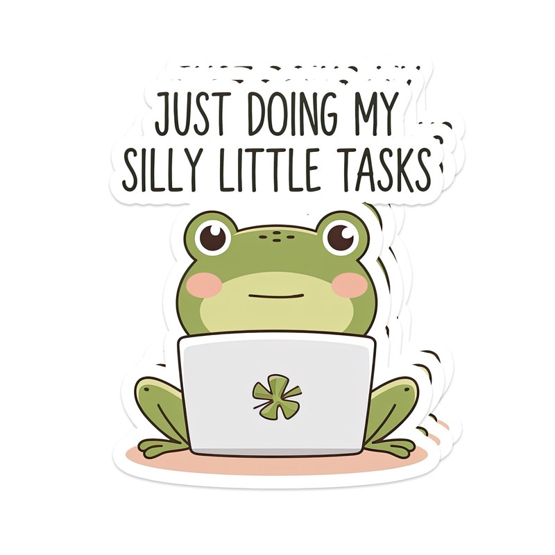 3 Just Doing My Silly Little Tasks Stickers - Cute Frog Aesthetic Vinyl Sticker Waterproof for Laptops, Planners, Water Bottles and Productivity Lovers