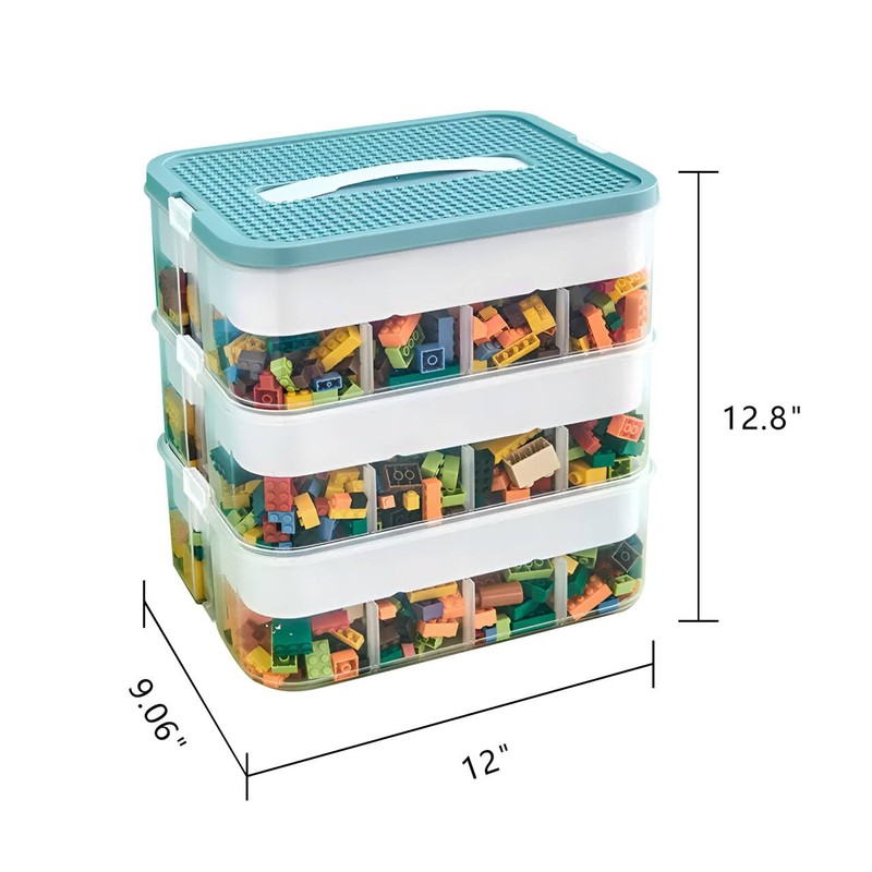 • Toy blocks organizer container removable tray consists of three stackable layers, providing versatile storage options, each layer can be used independently.