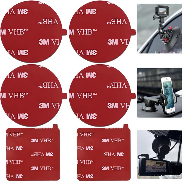 3 M Double Sided Adhesive Pads,Car Mount Sticky Pad Replacement.3 M Sticky Dash Cam Mounting Tape.Heavy Duty Tape Sticker for Dashboard &Daily Use.Waterproof,Heat-resistant.Easy Use,Squares&Round,6PCS