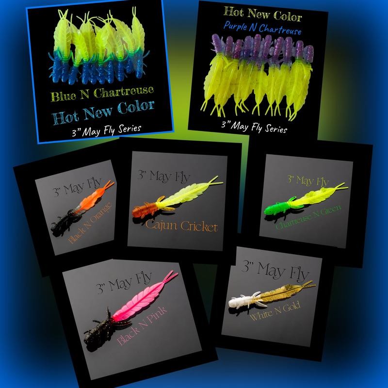 3” May Fly Series 10 Per Pack - One of the hottest crappie & panfish baits in our store. - May Fly Color: Bluegilll & Chartreuse