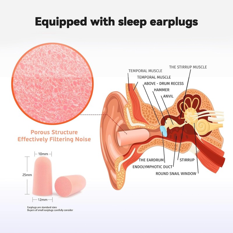 • Equipped with 10 sleep earplugs. Block out noise in any environment with our sleep earplugs. Great for sleep, concerts, work and your next party. And help focus while studying. Enjoy a peaceful experience wherever you go