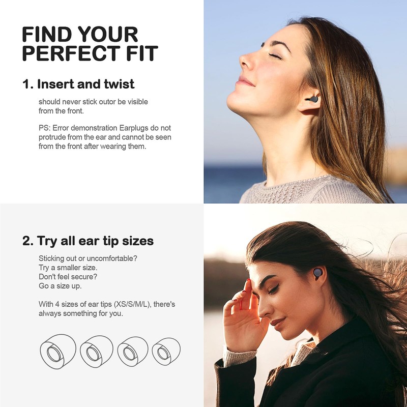 • All Day Comfortable Design - Adopting a slimmer earbud body and a smaller angle earbud mouth for a more natural and comfortable daily wear.Multiple sizes to accommodate both large and small ear canals,Earplugs come in four sizes (XS, S, M, L), ensuring good sealing and safe wearing regardless of the size of your ears