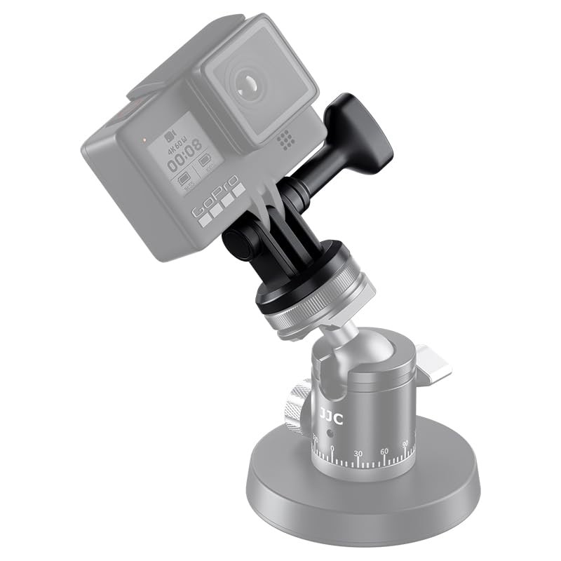 - 1/4"-20 female thread on the bottom, action camera clamp on the top.