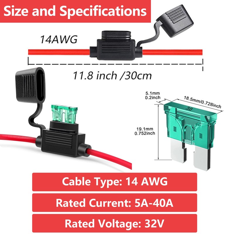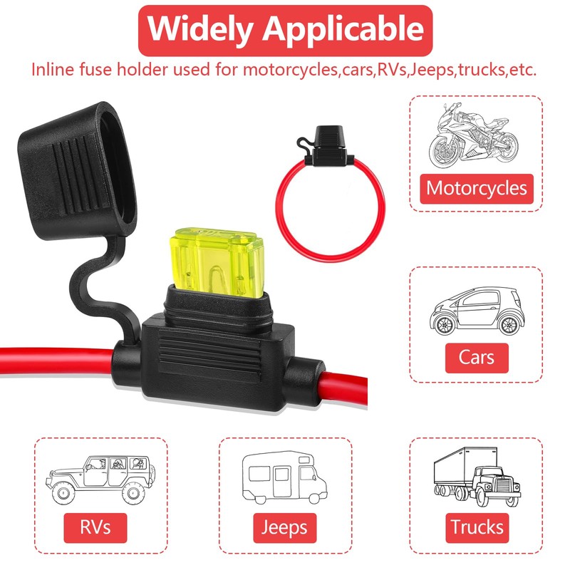 • 【Wide Application】: Support ATC/ATO standard blade fuse of 5A, 7.5A, 10A, 15A, 20A, 25A, 30A, 40A, easy to use and ideal for car truck, boats, RVs, ATVs, Jeeps, Motorcycles, and much more