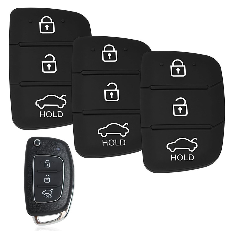 3 Pack 3 Button Key Fob Rubber Pad Replacement Compatible with Hyundai i40 i30 i20 i10 ix20 ix30 ix35 ix45 ix55 Tucson Santa Fe Elantra Accent Solaris Velostar Car Key Case Buttons Cover