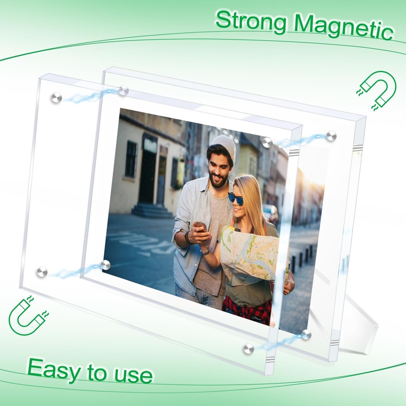 • Premium Acrylic Material: Magnetic photo frames are crafted from high-quality, crystal-clear, UV protection, shatterproof acrylic, picture frame helping to preserve the quality and colors of your photos and artwork over time.
