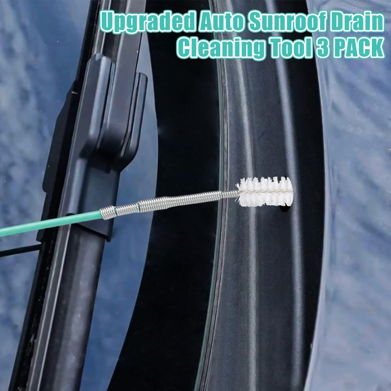 - Flexible Drain Brush Long Pipe Cleaners: This set of tools includes three professionally designed cleaning brushes, specially designed for cleaning the drain holes of car sunroofs and windshield wipers, ensuring that your car's drainage system is unobstructed.