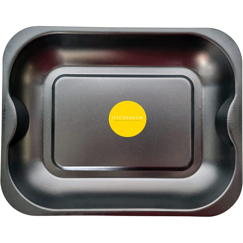 3-Pack Black Roasting Baking Tray Set - Small (28cm), Medium (33cm), and Large (38cm) - Baking Tray Set Tray/Pan, Non-Stick, Multi-Pack Set Oven Trays - Dishwasher Safe and Easy Clean by KITCHENEUR®