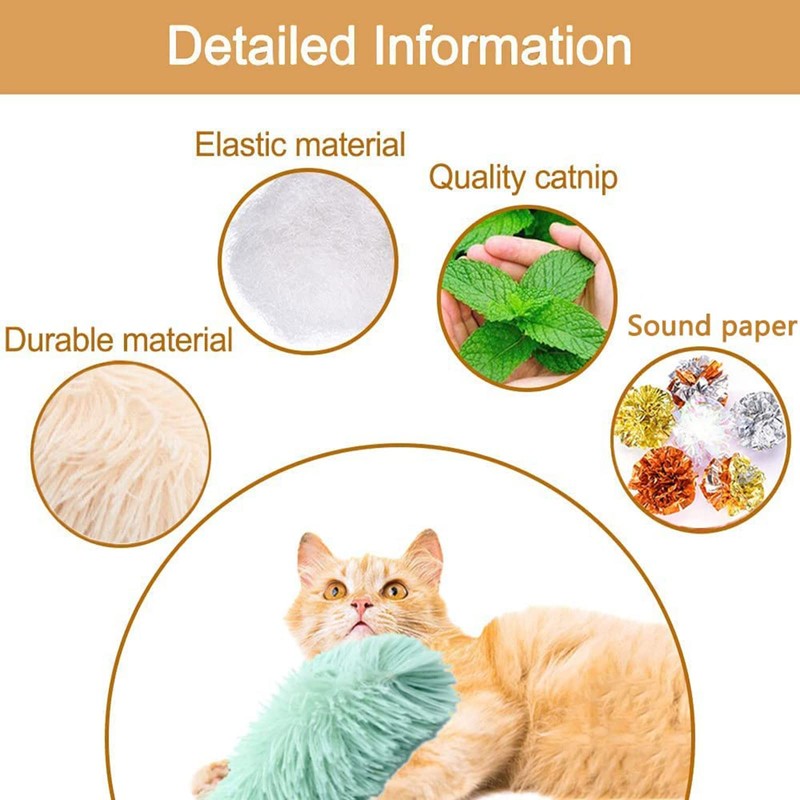 • 【High-quality Material】Catnip toys made of soft plush material, stuffed with soft PP cotton and natural catnip and we added sound paper on the top of the toy, can attract your cats to play and chase, will increase your cats' amount of exercise, keeping them stay physically healthy.