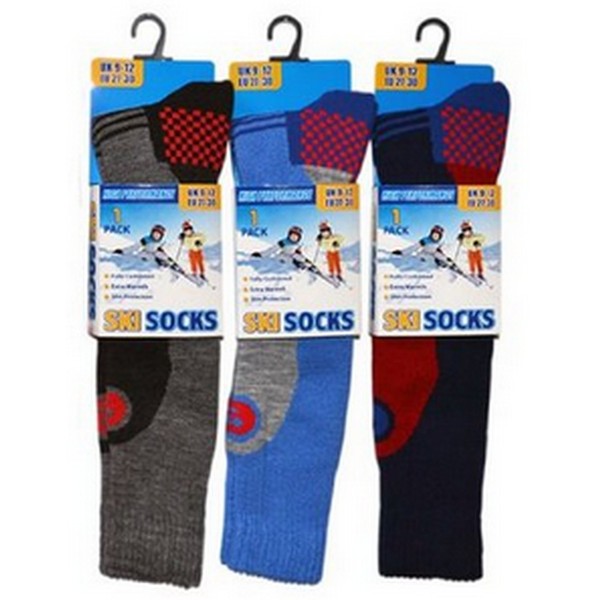 3 Pack Childrens/Boys High Performance Ski Socks With Extra Cushioning, Shin Protection, Assorted Colours, UK: 9-12, EUR: 27-30