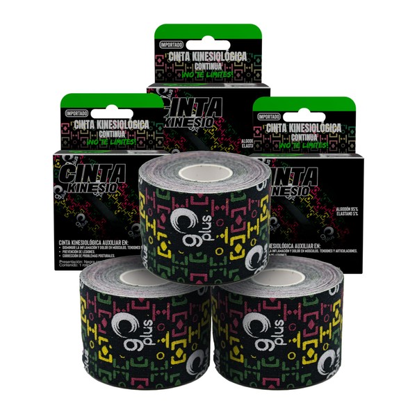 3 Pack Cinta Kinesiologica Negra 5 m Go Plus