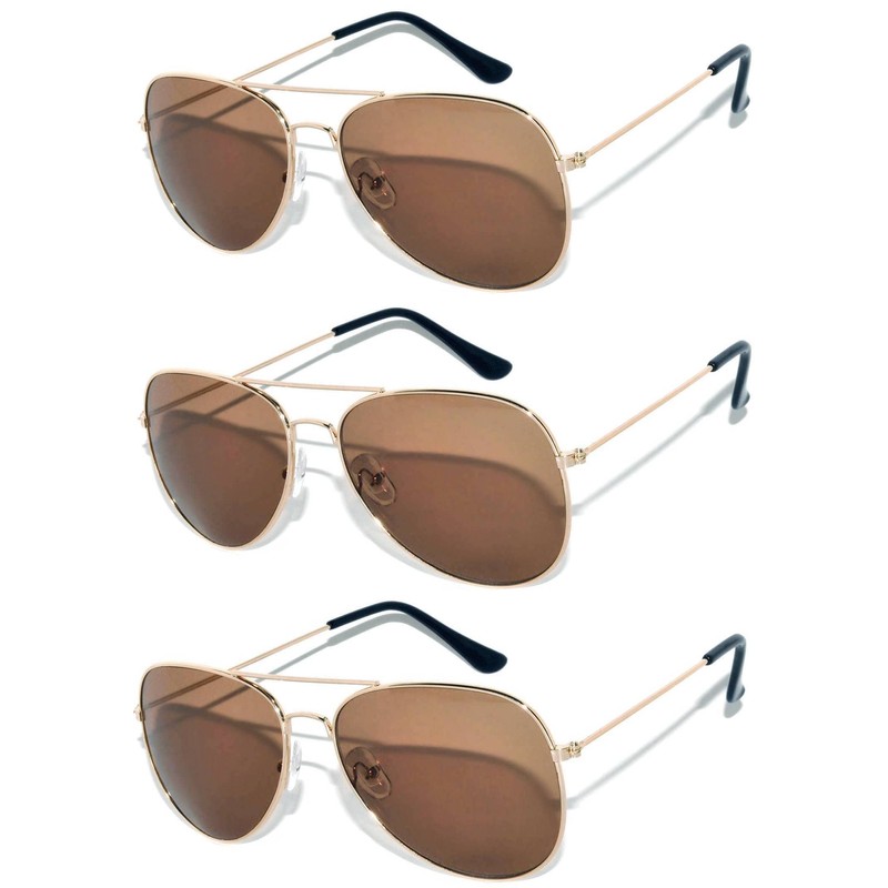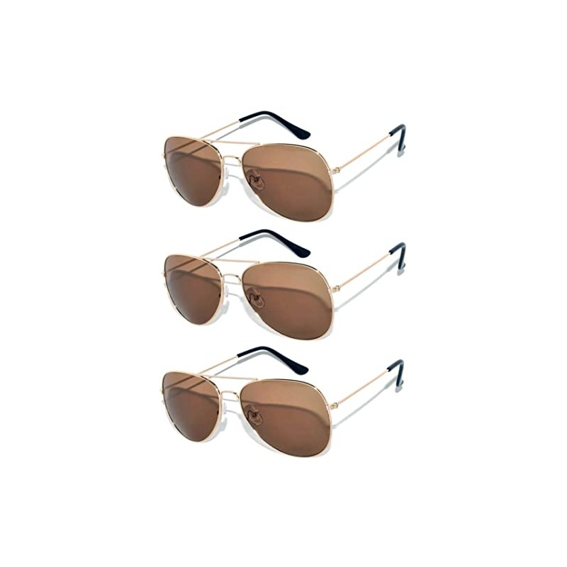 3 Pack Classic Aviator Brown Lens Sunglasses Gold Color Frame Unisex