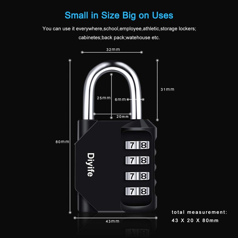 - 【High Security】 The combination of the 4-digit code lock has 10000 code combinations, 10 times higher than that of the 3-digit code lock, which is more secure and reliable. Never worry about losing your keys. In addition, this electroplated steel material lock is strong enough that can't be removed or cracked by human force. Shackles diameter: 6mm