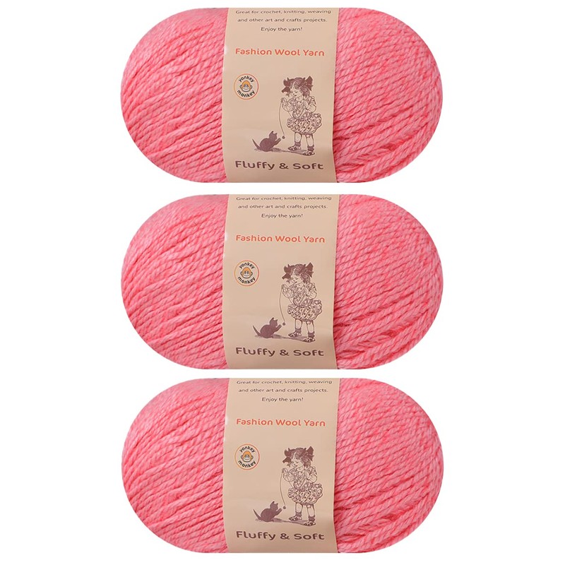 3-Pack Fluffy Wool Blend by Yonkey Monkey. Knitting Crochet DIY Art Crafts (Peach Powder 032)