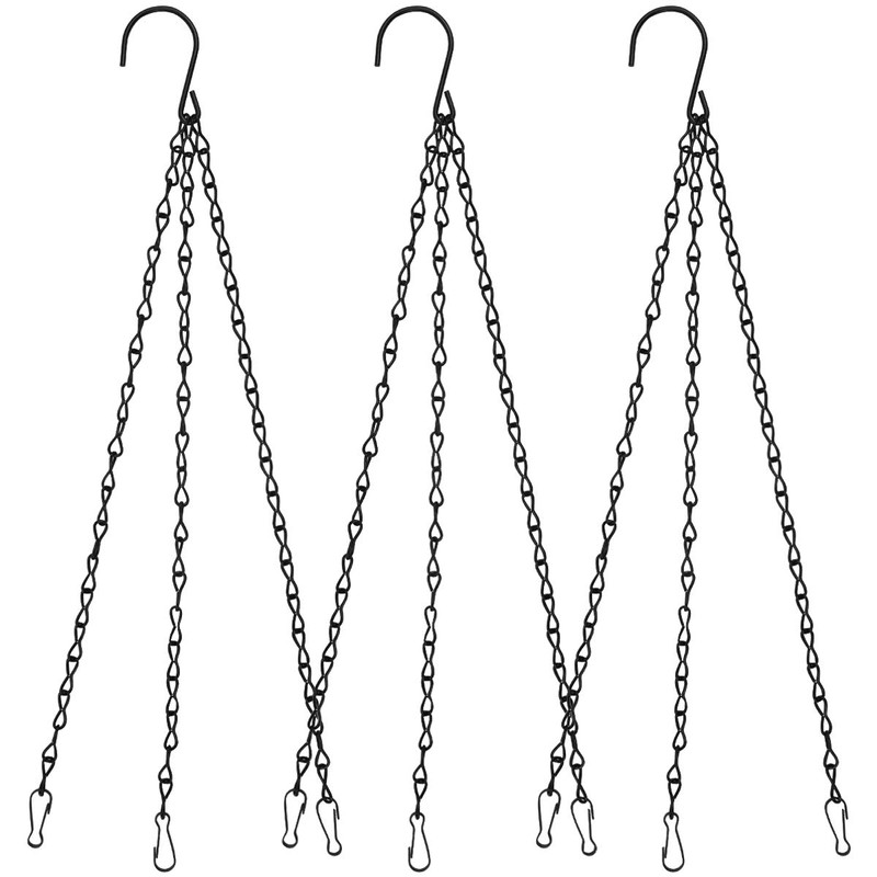3 Pack Hanging Chain with Hooks, Flower Pot Chains for Hanging Plants, Metal Hanging Basket Replacement Chain with 3 Point for Bird Feeders Planters (Black)