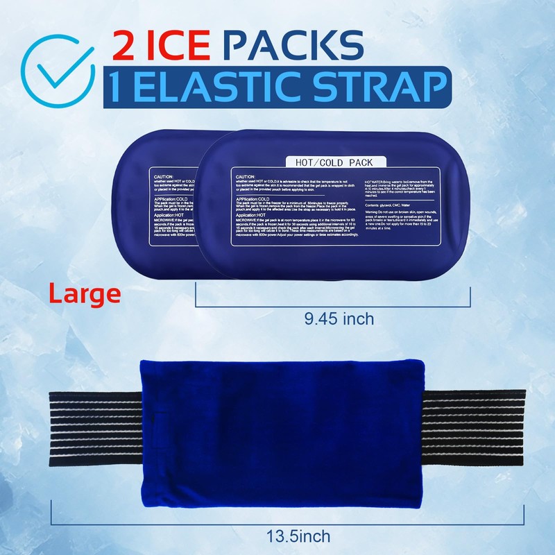 - Reusable Gel Ice Packs with Secure Compression: Features professional-grade gel ice packs reusable hundreds of times. Our ice wrap provides effective cold compression therapy with adjustable straps (like an ace bandage with velcro) for a secure, hands-free fit on knees, shoulders, back, elbows, ankles, wrists, or hips. Stays flexible when frozen and won't leak. Gel Size:9.45*5.12inch