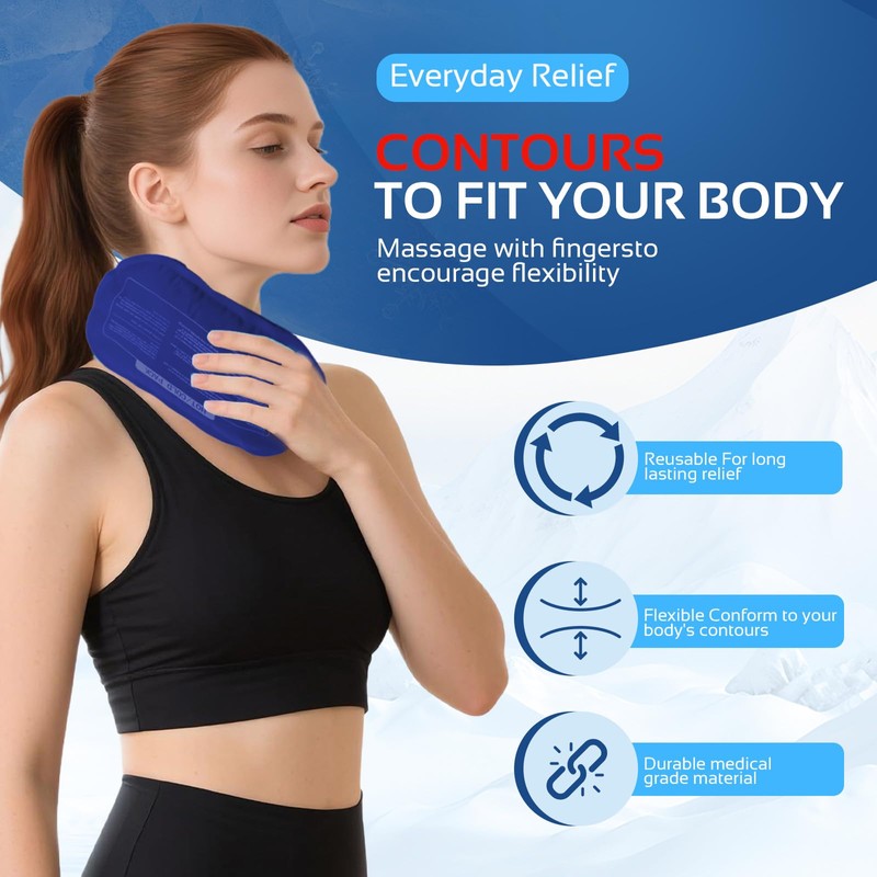 - Extended Relief & Versatile Body Support: Engineered with a lower ice point gel for longer-lasting cold therapy compared to standard ice bags. This versatile cold compress provides ample coverage for effective relief on multiple areas: use as a shoulder ice pack wrap, back ice pack, ankle ice pack wrap, elbow ice pack, wrist ice pack wrap, foot ice pack wrap, or hip ice pack