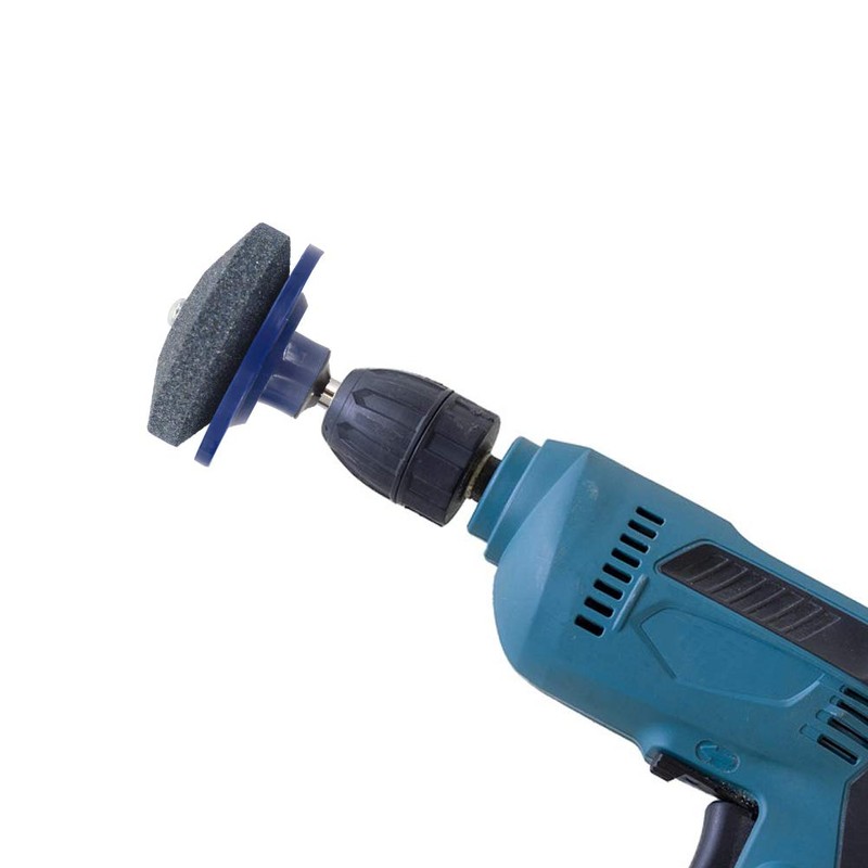 1.Usage:Placed sharpener in drill. Kept plastic disc on back of blade,then keep cutting angle of bade the same