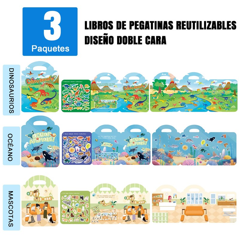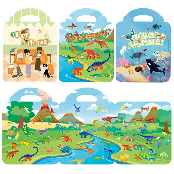- ❤3 Pack de libros de pegatinas reutilizables en 3D para niños pequeños:Recibirás 3 libros de pegatinas reutilizables con diferentes temas (libro de pegatinas de dinosaurios, libro de pegatinas de mascotas y libro de pegatinas de océano ). Puedes usar tu imaginación para pegar pegatinas en cualquier lugar del libro, que se pueden quitar en cualquier momento y usar repetidamente sin dejar rastros en la superficie. Si tiene alguna pregunta, no dude en consultarnos.