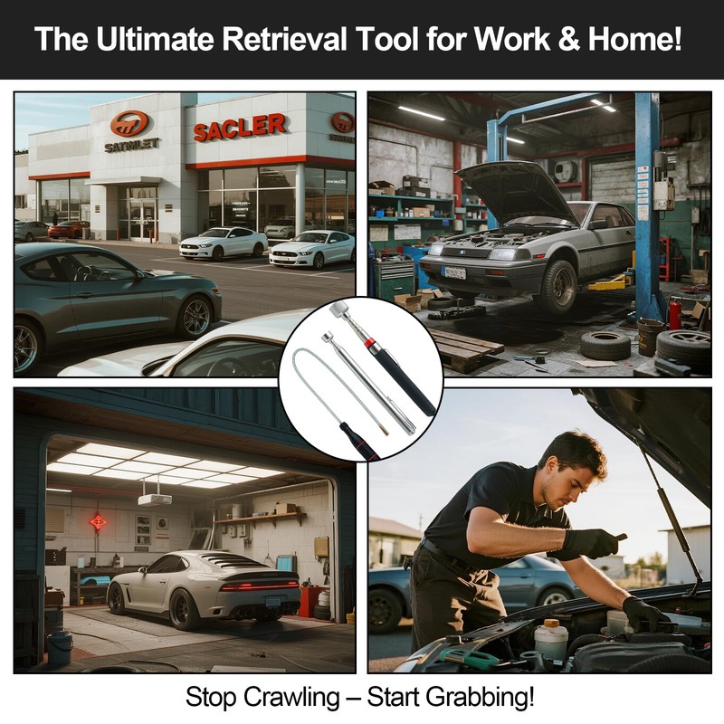 - IDEAL FOR MECHANICS & DIYERS:Perfect for auto repair, workshops, construction sites, or home use. Retrieve metal objects from drains, HVAC systems, tight corners, or cluttered garages without crawling or disassembling parts.