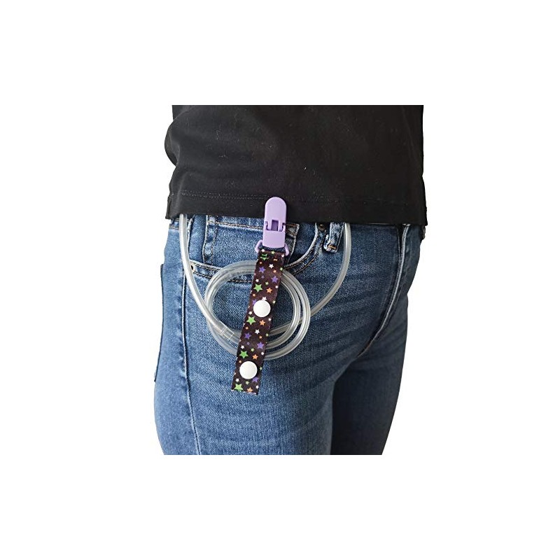 - EASY TO USE: Wrap the excess tubing in a loose coil and use the snap to hold it. They can be clipped clothing, backpack, wheelchair, or any handy surface.
