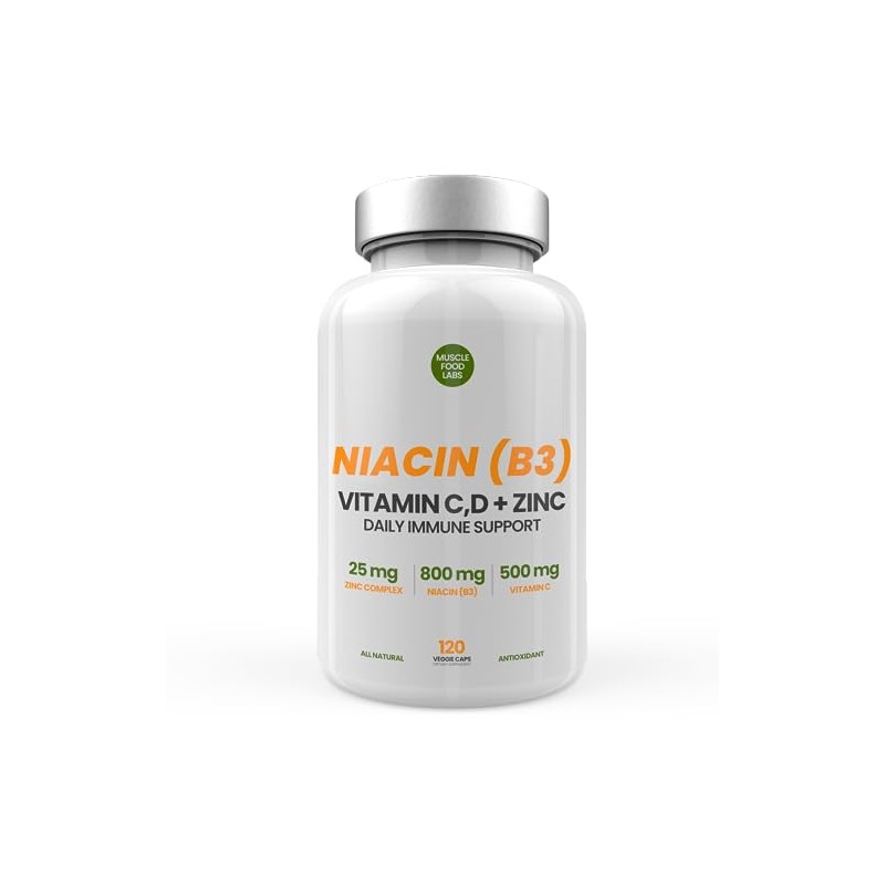 3 PACK - MUSCLE FOOD LABS C D Z | NIACIN(B3) | 360 Vegetarian Capsules |3 PACK