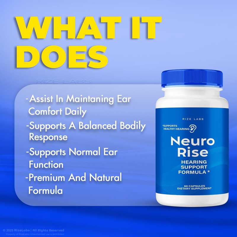 rize labs - Neuro Rise Capsules, Hearing Support Supplement, Pills to Support Healthy Hearing, Advanced Formula for Ear Health, Tinnitus & Noise Relief (180 Capsules)