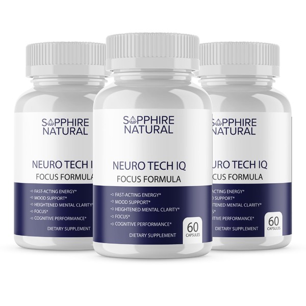 3 Pack Neuro Tech IQ Brain Supplement - Neurotech Iq Focus Formula Enhancement Pills (180 Capsules)