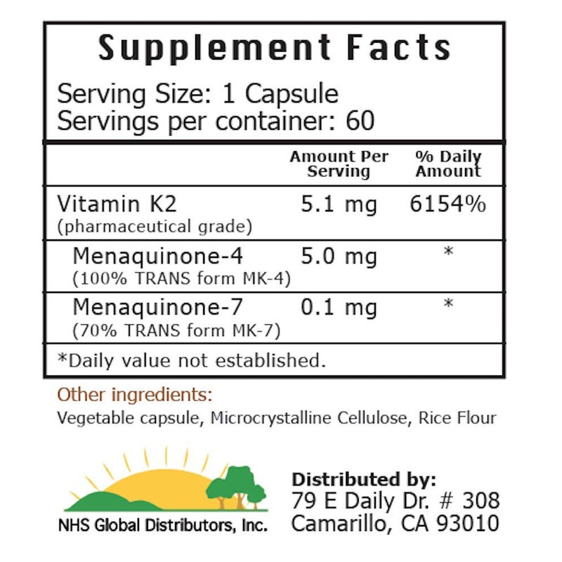- vK2 is pharmaceutical grade vitamin K2, providing BOTH MK4 (5 mg) AND MK7 (100 mcg).