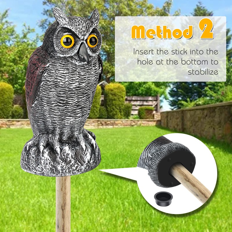 - 【Easy Installation】The owl decoy comes with a bottom tab that can be filled with sand to increase stability. It can also be easily mounted on a stick or pole with the hollow bottom.
