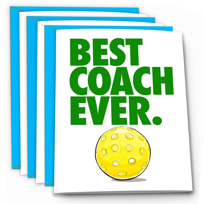 3-Pack Pickleball BEST COACH EVER Thanks Coach Card (5x7) Illustrated Sports Greeting Card and Envelope Awesome for Pickleball Player and Team Coach Appreciation - They'll Love 'Em!