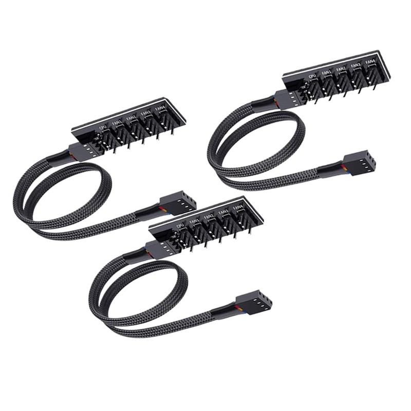 3 Pack PWM Fan Hub 1 to 5 Splitter,5-Way PC Chassis Internal Motherboard Fan Power Extension Cable,PVC Fan Power Extension Cable for ATX Computer Chassis 4-Pin and 3-Pin Cooling Fan Splitter Cord.