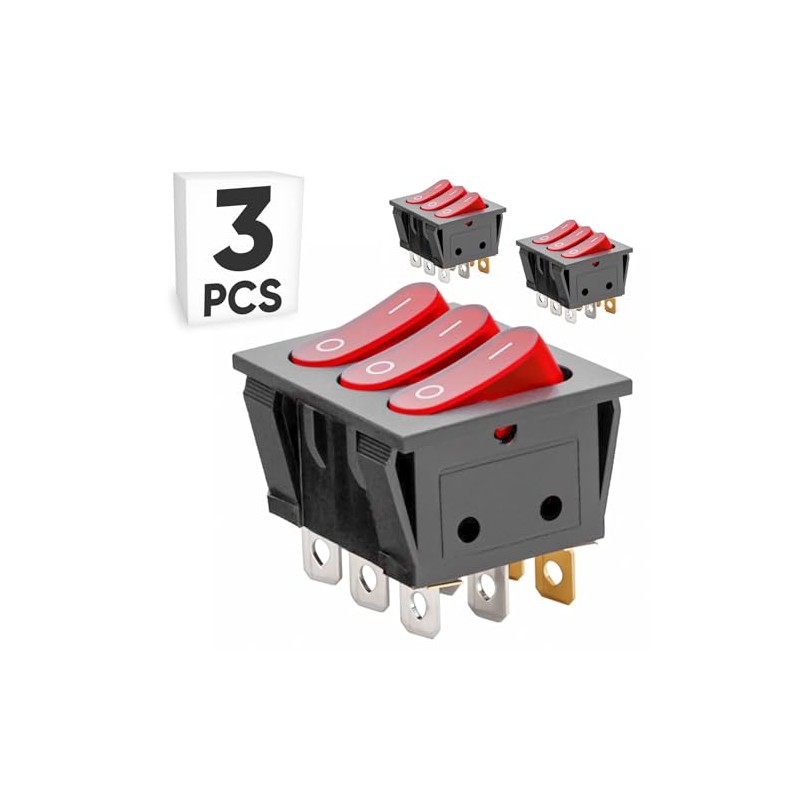 3-Pack Rocker Toggle Switch with Red Light and Wire, ON/Off 3PDT 9Pin Illumin...