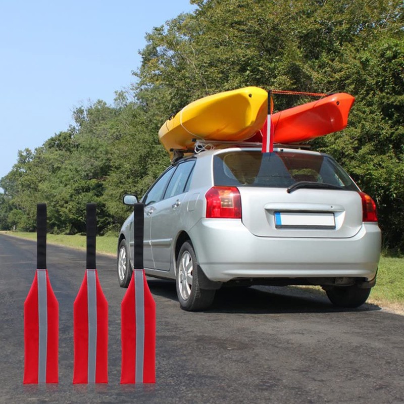 3 Pack Safety Travel Flag for Kayak, Red Canoe Safety Flag, Towing Warning Flag, Long Load with Webbing, Reflective Flag Sign Kayak Trailer Flag(Red)