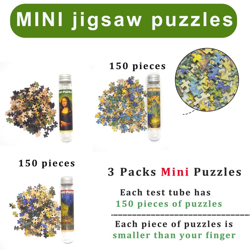 - 【JIGSAW PUZZLES 150 PIECES】: The puzzles for adults are include 3 pcs separate test tube packaging, each puzzle with 150 pieces. Each pieces puzzles smaller than your finger. It could provide you hours of fun and entertainment piecing this incredible jigsaw puzzle together, an ideal pastime for everyone to enjoy.