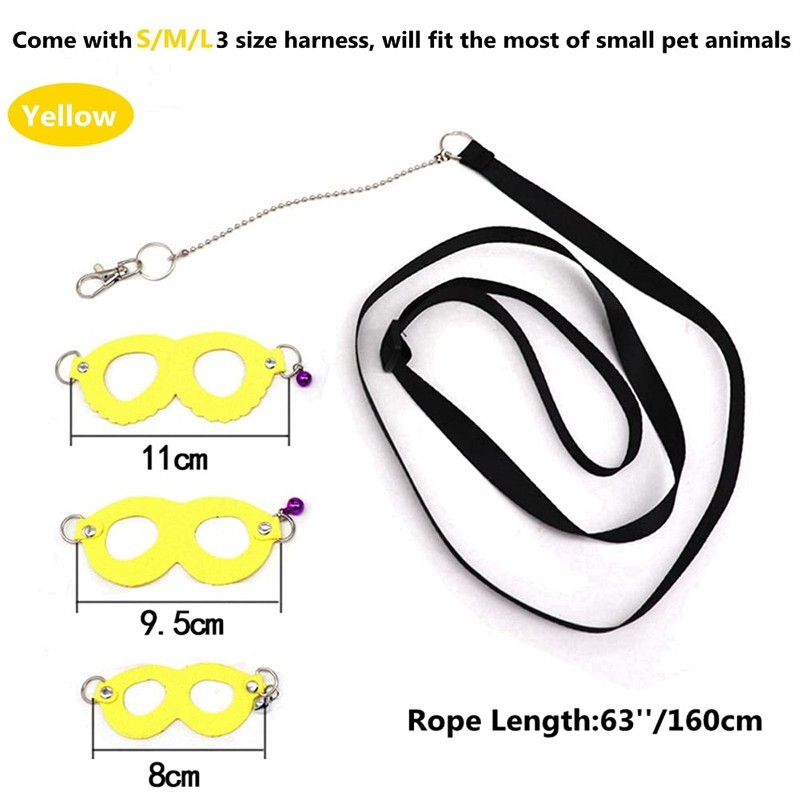 3 Pack Sugar Glider Harness and Leash Set - Adjustable Traction Rope Strap Anti-Biting Chain Rope, Small Animal Training Walking Vest Leash for Sugar Glider Squirrel Hamster Rat Birds Reptile (Yellow)